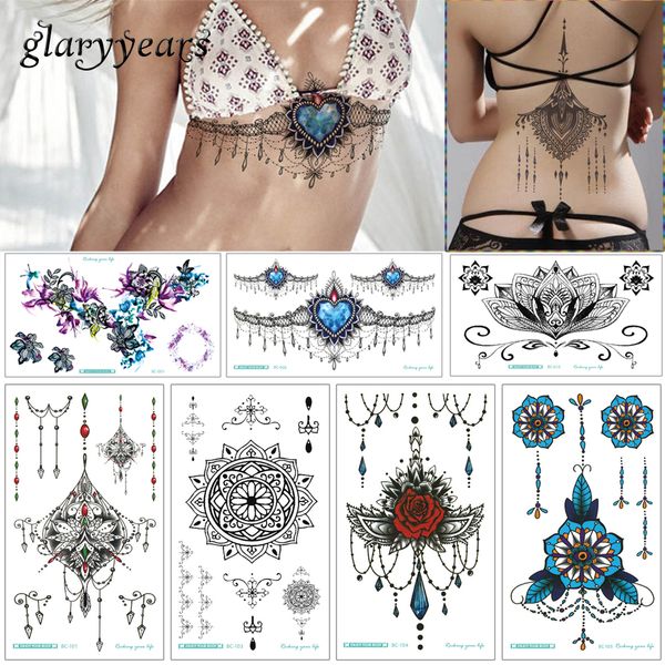 Glaryyears 3 Sheetschest Jewelry Pendant Tattoo Temporary For Women Under Boob Sternum Art Diy Makeup Xt Bc Tattoo Stickers Design Your Own Tattoo