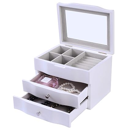 Ylu Yni Jewelry Box Earrings Organizer With 2 Drawer Large Mirror Jewelry Storage Case Yk18008w White