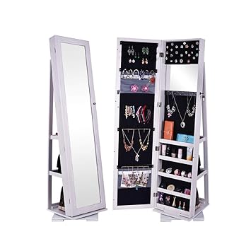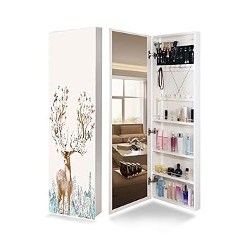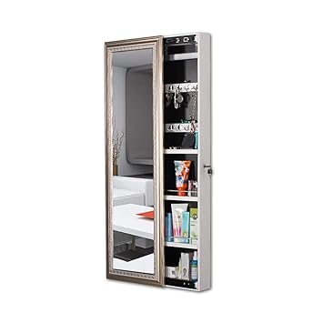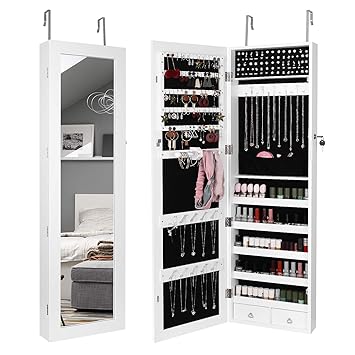 Mounted jewelry organizer lockable with frameless mirror 2 drawers jewelry box earring organizer thickened hanging wall mirror jewelry storage. Amazons choice for mirror jewelry storage. Giantex jewelry cabinet armoire with 13 led lights large storage for home bedroom full length mirrored 60 ring 16 hooks makeup organizer box standing jewelry armoires cabinets wmirror white.