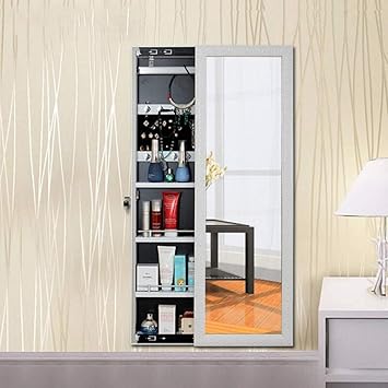 Gissar Jewelry Mirror Armoire Wall Mount Over The Door Mirror Jewelry Cabinet Storage Mirror Organizer Lockable Full Length Door Mirror White