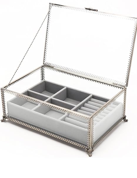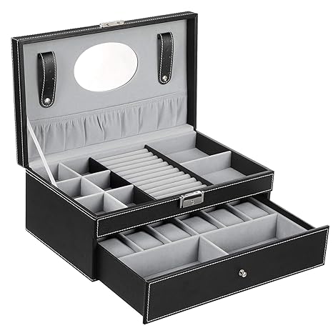 Get it as soon as wed jul 24. Free shipping by amazon. Portable storage jewelry box with makeup mirror small jewelry organizer for earrings necklace rings bracelet watch cosmetic leatherette grey display case.
