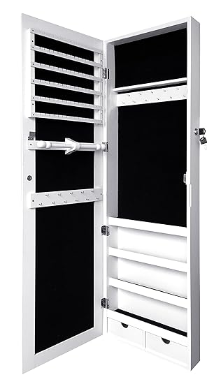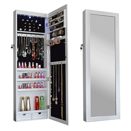 Songmics 6 leds mirror jewelry cabinet lockable walldoor mounted jewelry armoire organizer with mirror 2 drawers pure white ujjc93w. Skip to main content. Get it as soon as thu sep 19.