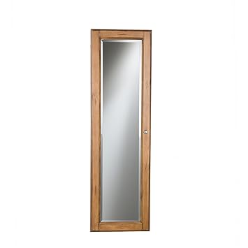 Facilehome Oak Mirror Jewelry Cabinet Armoire Wall Or Door Mounted Jewelry Storage Organizer Box With Lock And Key