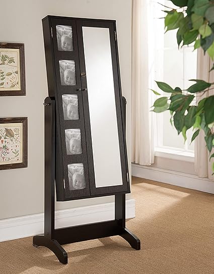 Major Q Modern Contemporary Design 60 H Home Standing Jewelry Armoire Cabinet Storage Mirror Espresso Finish With 5 Photo Frames Id80151457