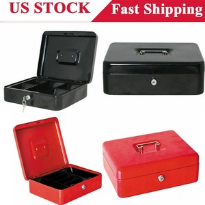 Details About Metal Cash Box Security Safe With Money Tray Key Lock Small Gun Jewelry Storage