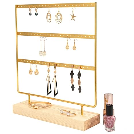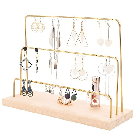 Qilichz 4 Tier Ear Stud Holder Earring Stand Display Rack Luxury Jewelry Stand Display Holder Hanger Rack Tower With Wooden Tray Dish For Earrings