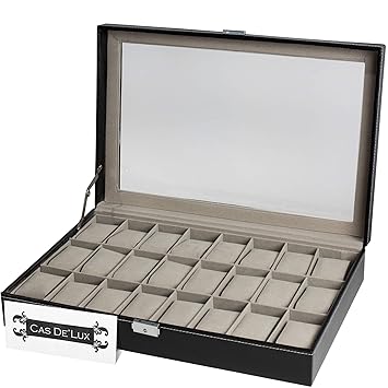 Watch Box Organizer Pillow Case 24 Slot Luxury Premium Display Cases With Framed Glass Lid Elegant Contrast Stitching Sturdy Secure Lock For Men