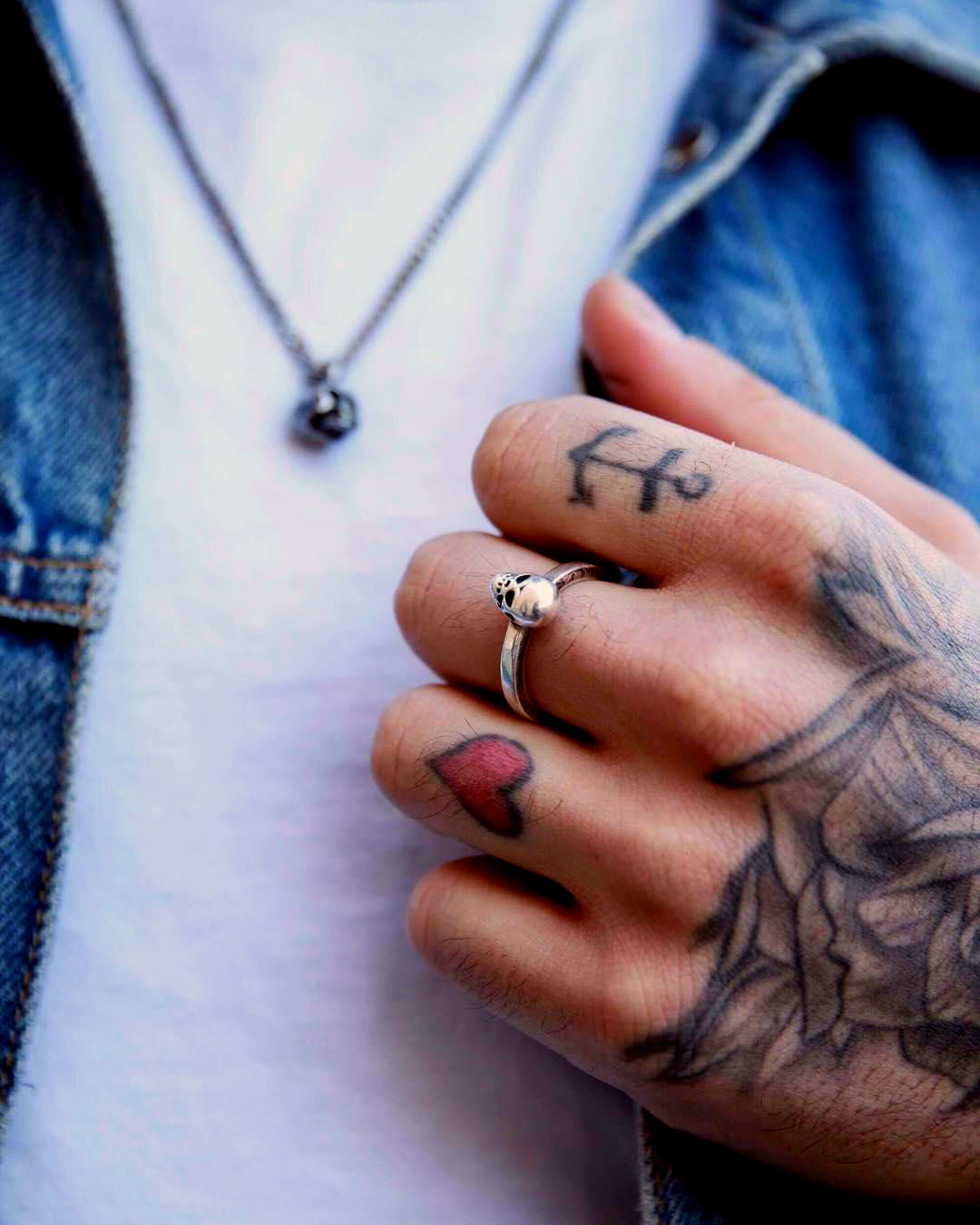 Then there are small heart and hand wrist tattoos with a rubber bracelet.