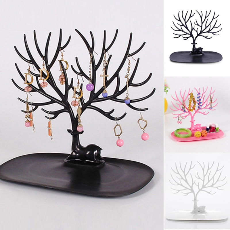 Jewelry Holder Itechor Creative Sika Deer Tree Jewelry Stand Display Earring Necklace Holder Jewellery Stand Rack Storage White